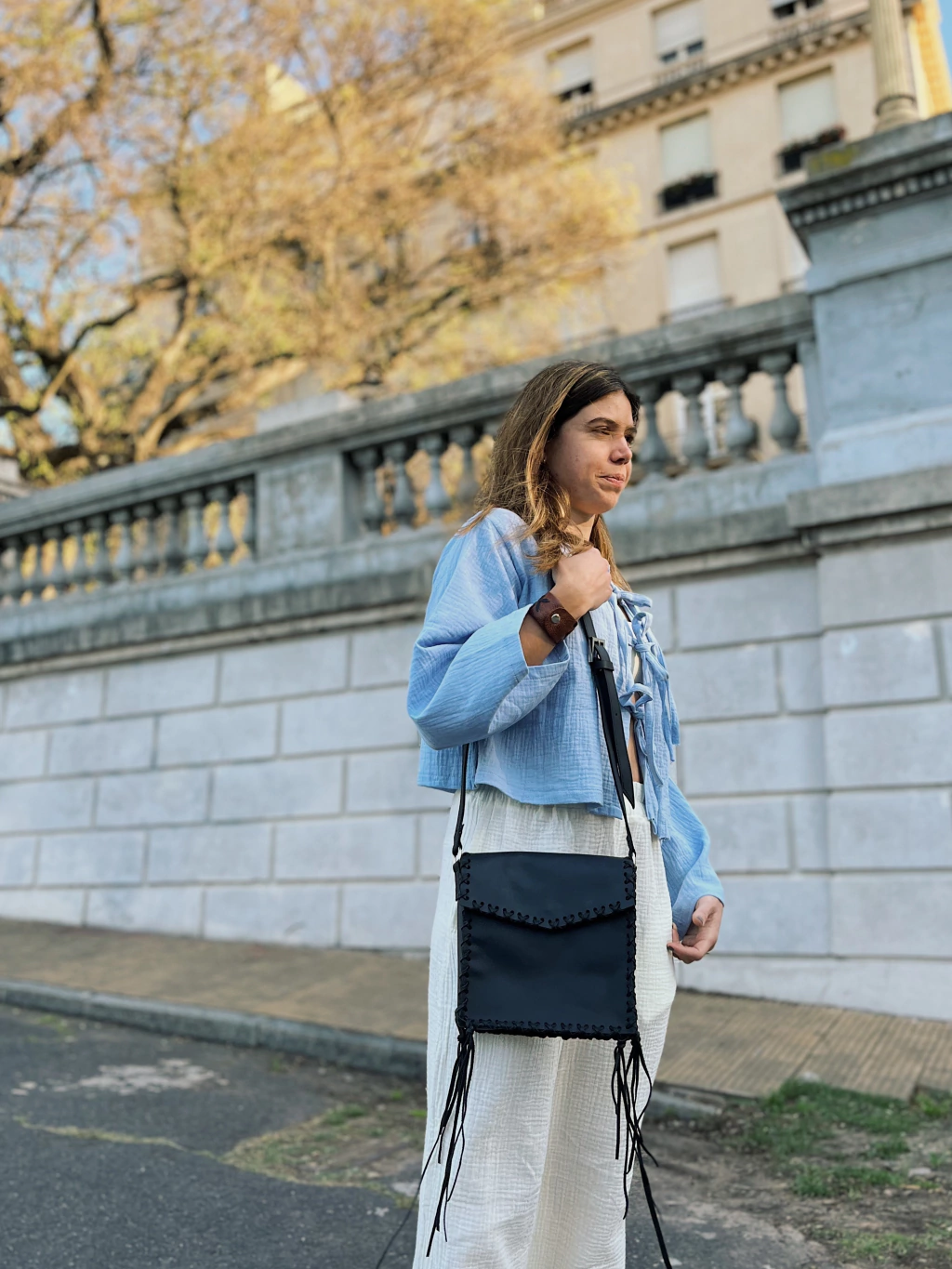 Pensada para una mujer que ama el tiempo, lo lento y naturalmente imperfecto. Que valora el arte y lo que se esconde en los detalles, que elige con cuidado cada prenda y accesorio. La bandolera Sarah es ideal para expresar la libertad que lleva en el alma.