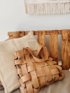 Creado a partir de un juego creativo de tiras de cuero, es una mezcla canchera y atemporal. Ideal para usar todo el año, en looks de día o de noche.