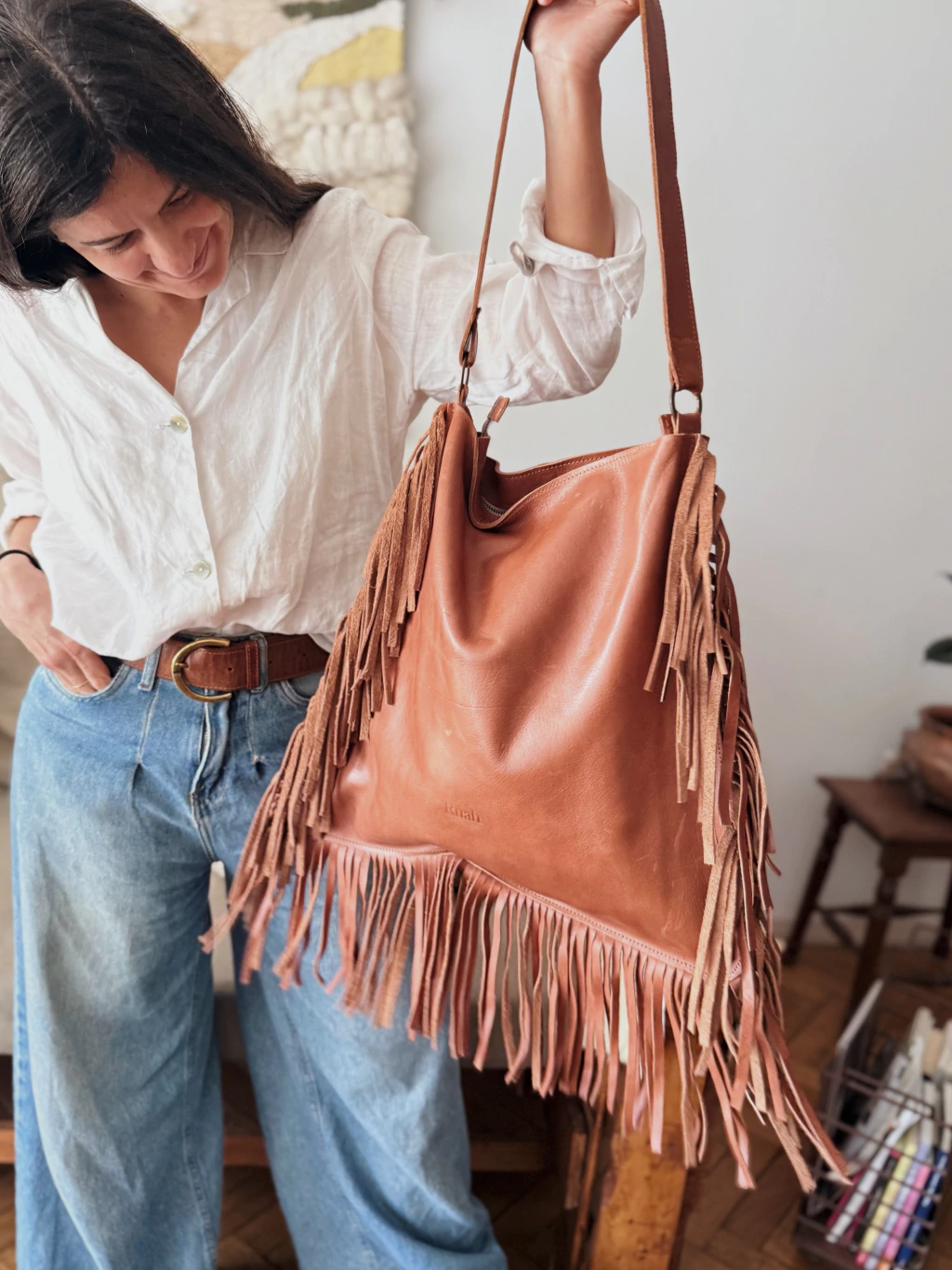 Pensada para mujeres que aman la libertad y el movimiento. La Gratia es esa cartera que llama la atención por su carácter único: grande, cómoda y llena de personalidad. Ideal para todo momento: depende de tu estilo cómo llevarla, y en eso está su magia — dejar que cada una resalte lo más genuino de su identidad.
