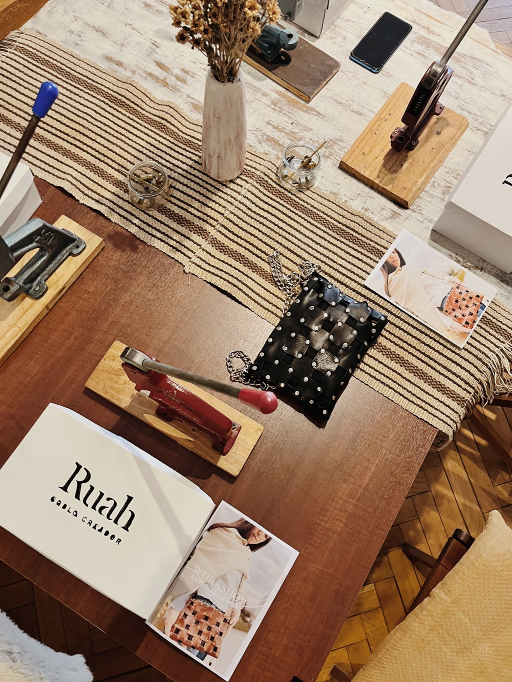 En este workshop vas a recibir todos los materiales y herramientas para armar tu cartera Rahaf y llevártela lista para usar.
